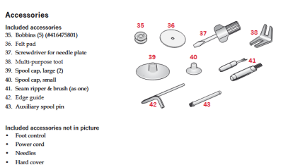 - Please only use accesses, needles, bobbins, needle plates etc that are suitable for the machine. Using the wrong parts can cause tensions issues, missed stitches and broken needles.