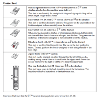 It only works whether presser feet with the center back cut out (see page 15 in the manual for more information.)