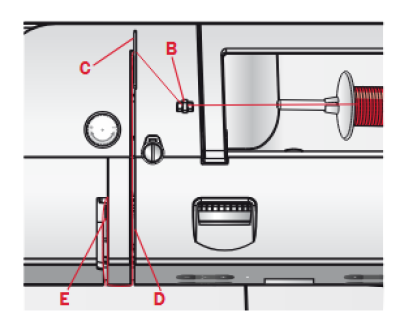 - Thread through the hole in the bobbin (C) from the inside to the outside.