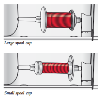 The spool cap should be slightly larger than the thread spool, there are two sizes please use the most appropriate. The flat side of the cap should be pressed firmly against the spool with no gap.