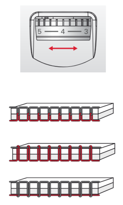 You should not need to change the presser foot pressure from the standard value “N”. When using specialty techniques or when sewing very light or heavy fabrics you can adjust the pressure to improve the result.