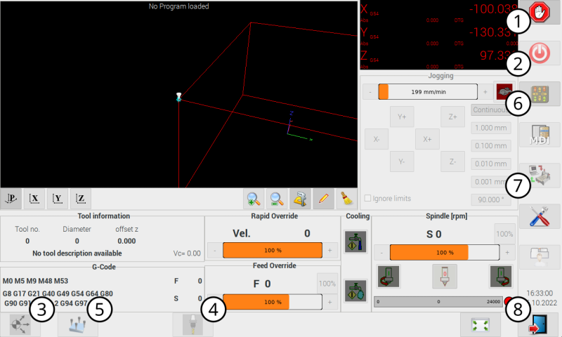 Once your work coordinates have been set you can now load your GCode program. Click the auto button (7) to enter this mode: