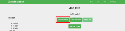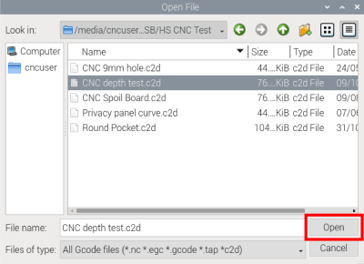 Click the load new file button and navigate to computer → / → media → cncuser → your USB drive and confirm from description that you have loaded the correct file, there are some preview tabs to see what is going to be cut, when you're happy press Done.
