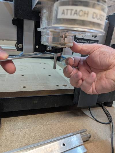 Spindle will move to front right and the screen will ask you to fit your first bit, fit bit, make sure bit doesn’t stick out lower than the bitsetter measurer. you might need to adjust height of dust shoe.