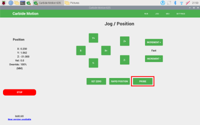 In Carbide Motion press the Jog button to enter the Jog Screen. You can use the buttons on the screen or the pendant to move the router around.
